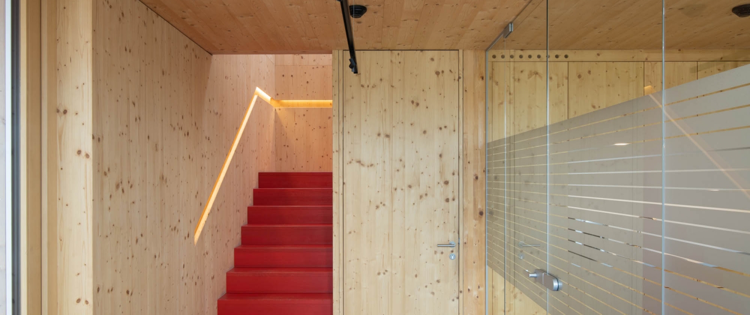 Der Brandschutz wird in erster Linie – auch wenn Deckenabhängungen ausgeführt werden – durch das tragende Element erfüllt. Das bedeutet: Die Massivholzplatte wird so stark bemessen, dass sie auch bei einem Vollbrand so lange tragend ist, dass der geforderte Brandschutzwert eingehalten wird. Je nach Anforderung können das 30, 60 oder 90 Minuten sein. Holz bildet im Brandfall durch die verkohlte Oberfläche seine eigene Brandschutzschicht und kann damit ohne weitere Materialien oder Anstriche hohe Brandschutzanforderungen erfüllen. Stahl hingegen braucht immer einen ummantelnden Beton, Gipsbekleidungen oder aufschäumende Anstriche als Schutzschicht. Obwohl nicht brennbar, würde Stahl ohne weitere Maßnahme im Brandfall schnell versagen.