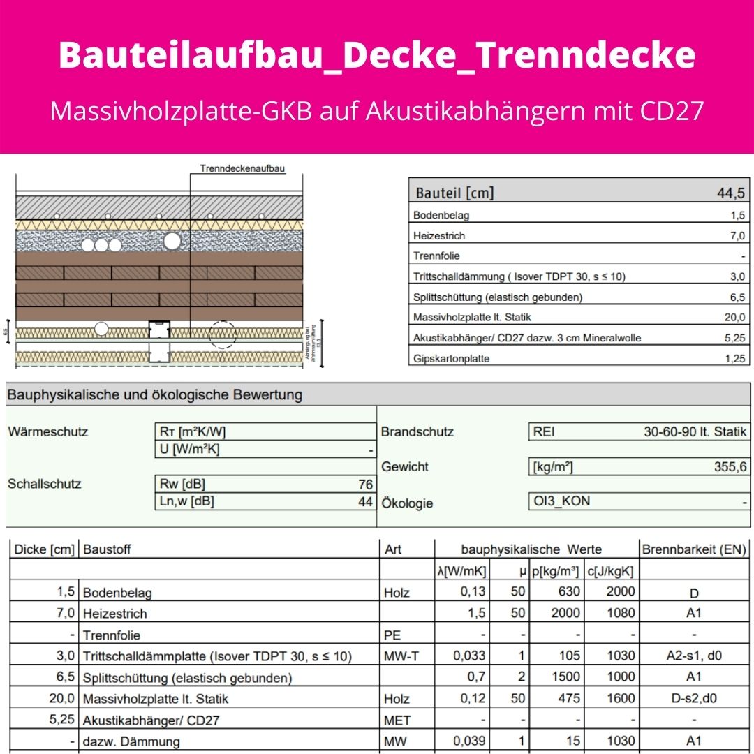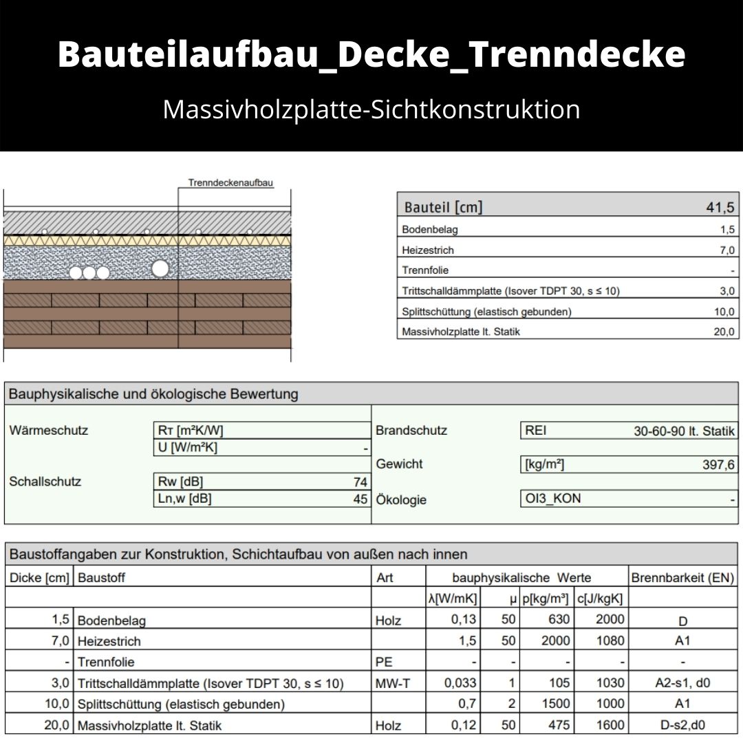 Allerdings haben wir unseren Blick dabei auf die Rohkonstruktion bzw. die reine Tragfähigkeit fokussiert. Im mehrgeschossigen Wohnbau gelten – anders als beim Einfamilienhaus – beim Schall- und Brandschutz höhere Anforderungen, die es zu erfüllen gilt. Deshalb braucht es entsprechende Aufbauten, die wir Ihnen diesmal anhand von 4 Beispielen von Zwischendecken – also der Trenndecke zwischen zwei Nutzungseinheiten – vorstellen.